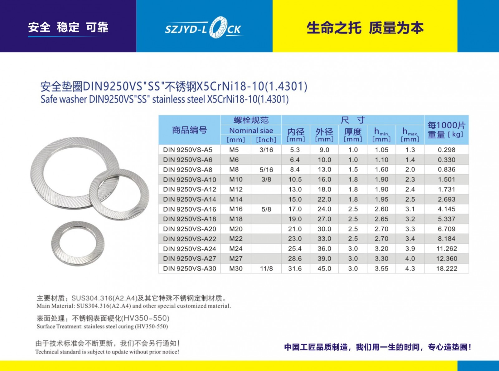 根據(jù)使用條件:A2/A4.SUS304.SUS316不銹鋼防松墊圈、都有硬化處理以提高強度等、表面會略有磁性!