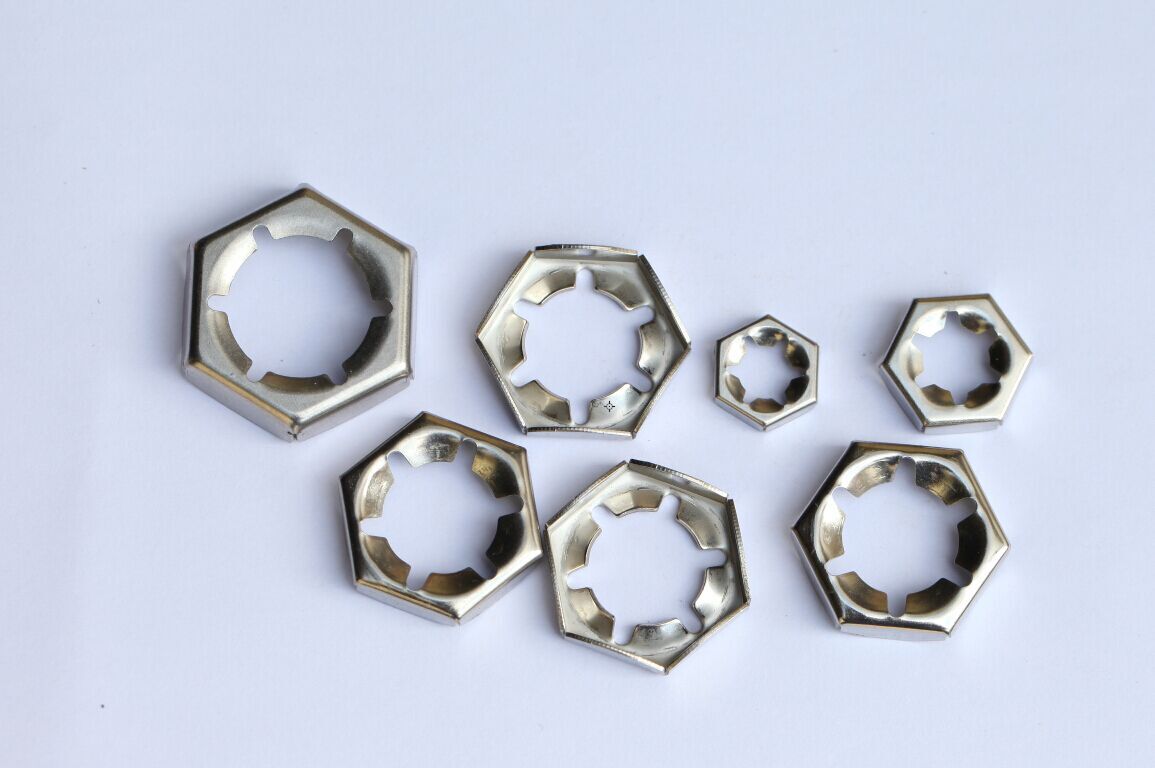 德國標準DIN7967扣緊螺母,SUS304/SUS316不銹鋼扣緊螺母/等換EN1.4401/EN1.4301不銹鋼扣緊螺母/級進模沖壓生產工藝,為了保證扣緊螺母的鎖緊性能,SZJYD品牌扣緊螺母的不銹鋼材質都在進行彈性硬化處理!