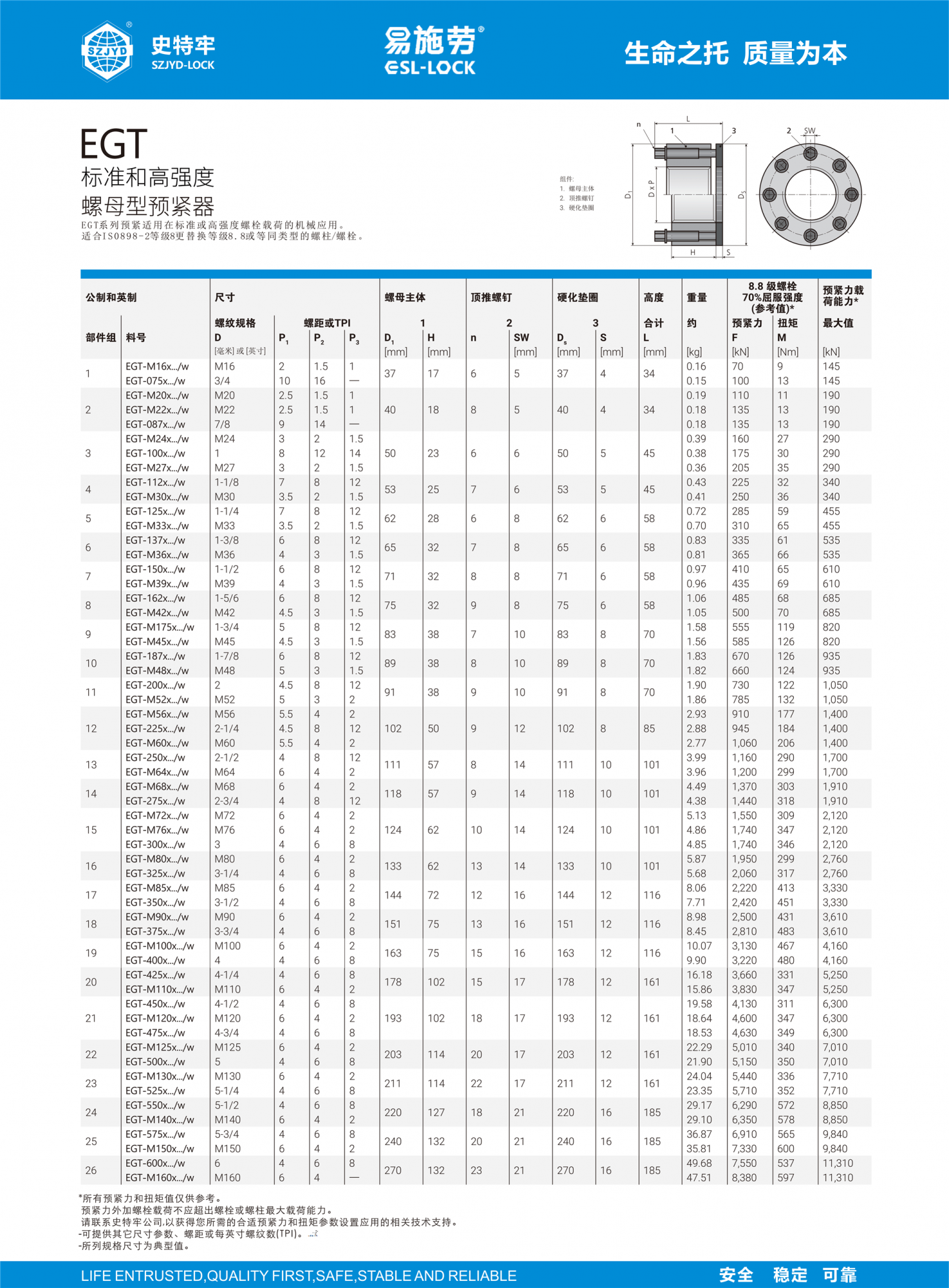 多頂推超級預(yù)緊器,可在很小空間安裝,使用簡單工具即可輕松預(yù)緊,節(jié)省安裝時(shí)間,ESL-LOCK品牌易施勞超級螺母具有完全的防松鎖緊功能,可多次拆卸重復(fù)使用。特別適用于M24規(guī)格以上大型螺栓鎖緊!一擰永固,永不松動!使用常規(guī)格為合金材料及特殊不銹鋼合金材料以及鎳基合金材料!更多了解歡迎咨詢我們.....